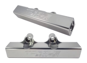 Torque Solution Top Feed Fuel Rails are a must have for high horsepower applications and a perfect complement to your high flow fuel injectors. Our rails are made from 6061 Billet Aluminum with a 5/8" ID for maximum fuel flow and threaded for -8 O-Ring boss fittings (not included). Perfect for setting up your fuel system in parallel to ensure each cylinder receives optimal fueling. All our rails come anodized with our logo engraved into the billet to look as good as they perform. Zinc install hardware is included to prevent rusting.